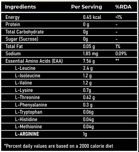 Warrior Nutrition EAA designed with complete range of all 9 essential amino acids which aids in recovery, muscle soreness and protein breakdown.